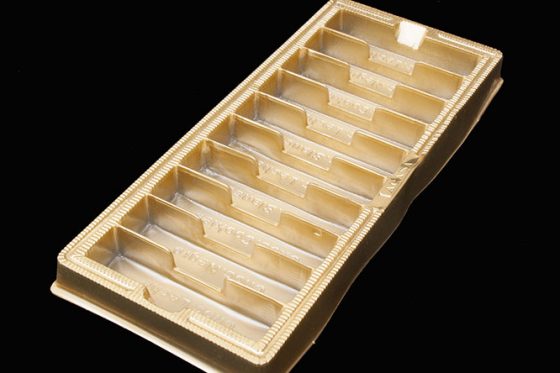 Plateau à chocolats avec différentes capacités et mesures. Le plateau est adapté pour conserver et transporter des denrées fraiches.